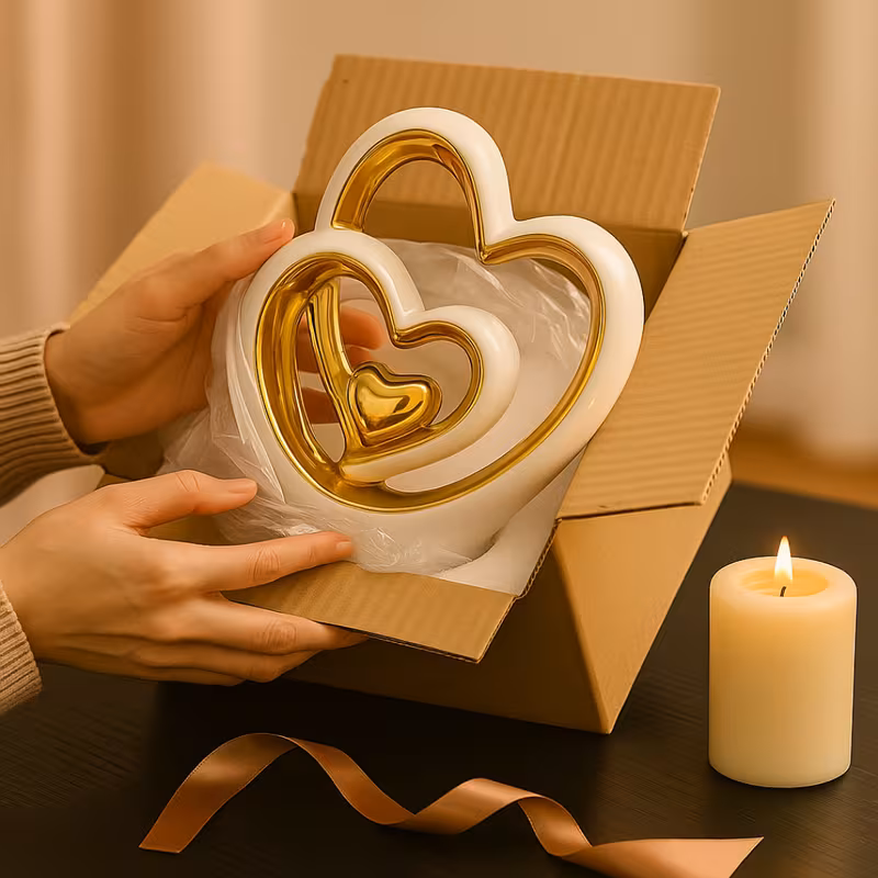 Add elegance and warmth to your home with this 25.5cm golden ceramic heart ornament. Designed in a modern sculptural style, it stands beautifully on shelves, tables or mantels as a striking décor accent. The smooth ceramic finish reflects light for a subtle shine, while the sturdy build ensures durability. Perfect for living rooms, bedrooms or offices, this heart sculpture also makes a thoughtful gift for weddings, anniversaries, Valentine’s Day or housewarmings.