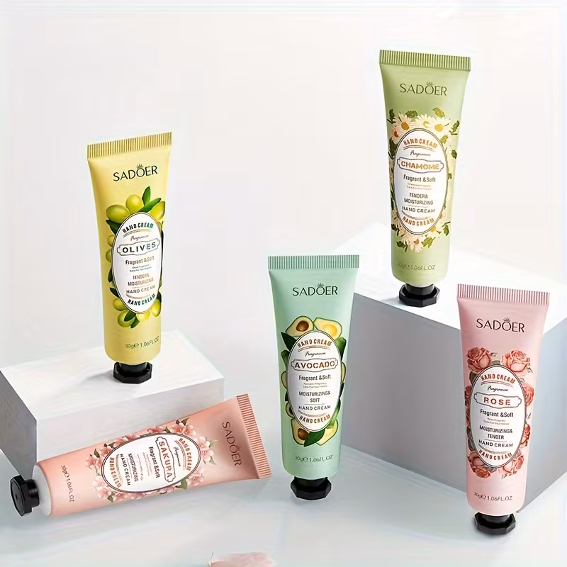 Flower and Fruit Hand Cream 5 pcs:Water, Cetearyl Alcohol, petrolatum, Mineral Oil, Dimethicone, Palmitic Acid, Ceteareth-25, Lauric/Myristic/Palmitic/Stearic Glycerides, Stearic Acid, Glyceryl Stearate, Butylene Glycol, Methylparaben, Polyacrylamide, Diazolidinyl Urea, Propylparaben, Glycerin, Aroma/Fragrance, Laureth-7, Phenoxyethanol, Rosa Rugosa Flower Extract, Chrysanthellum Indicum Extract, Prunus Speciosa Flower Extract