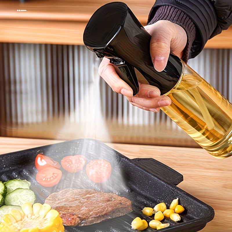 Food-grade 200ml Olive Oil Spray Bottle, Transparent and Refillable Kitchen Sprayer for Cooking, Baking, Grilling, Frying, Salad, Air Fryer, Easy to Clean and Durable, Suitable for Home, Outdoor, Restaurant, and BBQ