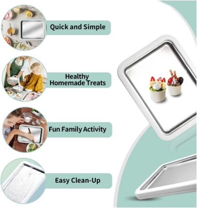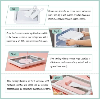[Easy to Use] This ice cream maker pan is easy to use. Just pour the mixed ingredients into a quick-freeze pan, then scoop and fry until the ice cream in its shape. The double-layer hollow design is easy and quick to cool food.