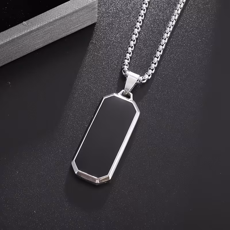 1pc 304 Stainless Steel Black Glossy Pendant Necklace - Minimalist Unisex Jewelry for Men & Women, ic-Free Durable Chain, Casual & Party Wear, Shiny Elegant Necklace (No Plating)