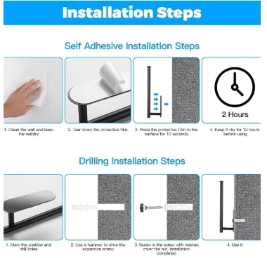 【Premium Material】 This black paper towel holder is made of premium SUS304 stainless steel, we pursues exquisite craftsmanship and strict quality control, making sure the towel rack rust-proof and scratch-proof, will not fade easily. Matte black classy design can blend into any styles of decorations.