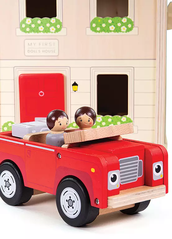 Introduce little ones to their very first miniature home with our Folding Dollhouse Set! Crafted from wood, this charming doll’s house opens up to reveal three storeys of beautifully designed rooms, including a bathroom, kitchen, dining area, bedrooms, and attic space. To spark imaginative play, the set also comes with a convertible red car and a pair of Mr and Mrs wooden dolls - perfect for endless storytelling adventures.