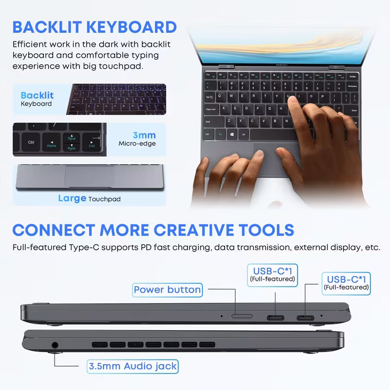 CHUWI MiniBook X N150 Laptop 360° YOGA 10.51" Touch Screen Mini Computer 16GB LPDDR5 512GB SSD 2TB SSD Expand Windows 11 Convertible PC Backlit Keyboard WiFi 6 Notebook