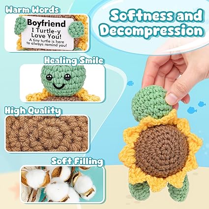 This handcrafted crochet turtle with its mint-green head and caramel shell makes the perfect boyfriend gifts. Holding a playful "To My Guy I Turtle-y Love You!" card, it’s an ideal boyfriend Valentines gifts, boyfriend christmas gifts or anniversary gifts for boyfriend—a unique way to show your love. 【Fun "I Love You" Message】The turtle comes with a witty card that says "I Turtle-y Love You!" (a clever pun on "Truly"). Whether he keeps it on his desk, gaming setup, or nightstand, it’s a sweet reminder of your bond. 【Soft & Durable Companion】Made from soft cotton yarn with a sturdy base, this presents for boyfriend is built to last. Its compact 2.8x2x3.9-inch size fits anywhere—work bag, gym locker, or travel backpack—making it a versatile christmas gifts for boyfriend. 【Pocket-Sized Love Everywhere】At just 2.8x2x3.9 inches, this turtle slips easily into his gym bag or work backpack. It’s a tiny but meaningful cute gifts for boyfriend that travels with him—perfect as long distance gifts when you’re apart or just because you care. 【Ready-to-Gift & Thoughtful】Comes with the message card pre-attached—no wrapping needed! Just hand this boyfriend gifts for him to your guy and watch him smile. Perfect for birthday presents for boyfriend, anniversaries, or any day you want to show love.