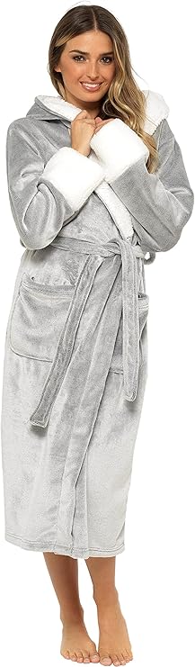 Material compositionPolyester Fleece Care instructionsHand Wash Only KATE MORGAN Ladies Soft Luxurious Hooded Gorgeous Snuggle Borg Dressing Gown, in UK sizes Small (8-10), Medium (12-14), Large (16-18), XL (20-22) ✅ BRILLIANTLY SOFT & COMFY: These ladies Kate Morgan Snuggle Borg dressing gowns are super soft and comfy, allowing you excellent comfort on those chilly days and when the weather is cooler. With 2 front pockets, they are hooded to keep you warm, a belt to tie it according to your requirement to keep you cosy and warm whenever these are on ✅ SPLENDID FOR THOSE LAZY DAYS: Whether you want to chill out and relax in bed on those lazy days until you feel ready to get up, or be it on a take it easy weekend or when you have time off from work, these ladies Gowns are perfect as a piece of loungewear when you want to unwind, slow down and de-stress whilst looking ultra stylish! ✅ GORGEOUS COLOURS: These Snuggle Womens Gowns are available in several colours as can be seen, the choice is yours whilst stocks last. Made with pockets for practicality which also keep your hands warm, you'll want to wear them whenever you are lounging! You can also turn the heat a little lower and wrap up in this classy housecoat to stay warm. ✅ A GENUINE OFFICIAL KATE MORGAN PRODUCT: Ideal for oneself and also this Dressing Gown makes the perfect gift for her!! Go on and treat her by presenting her this Dressing Gown for the bliss & comfort she deserves!