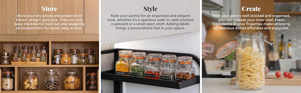 CAPACITY | The jar capacity is 1 Litre / 1000 ml which is the perfect size for preserving whole fruits and vegetables and storing dry foods like biscuits, sweet treats and grains, featuring a high-grade stainless steel clip system, engineered to create the perfect tension providing an airtight and secure seal every time, keeping the contents fresher for longer
