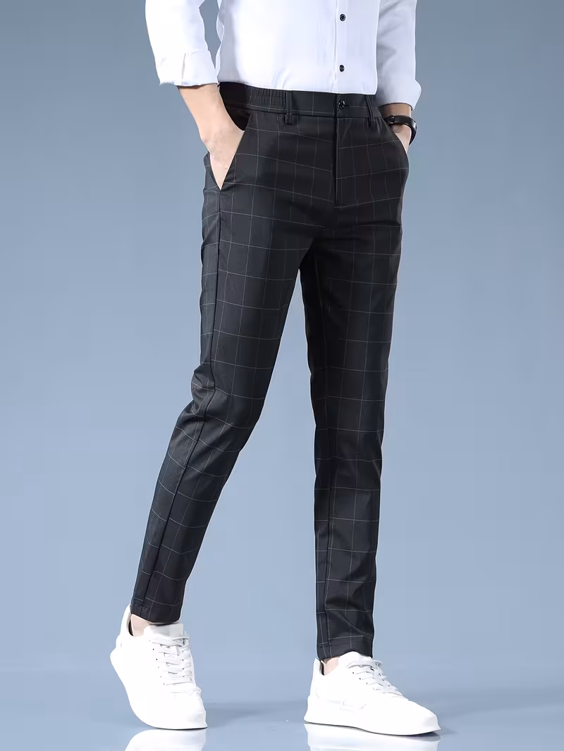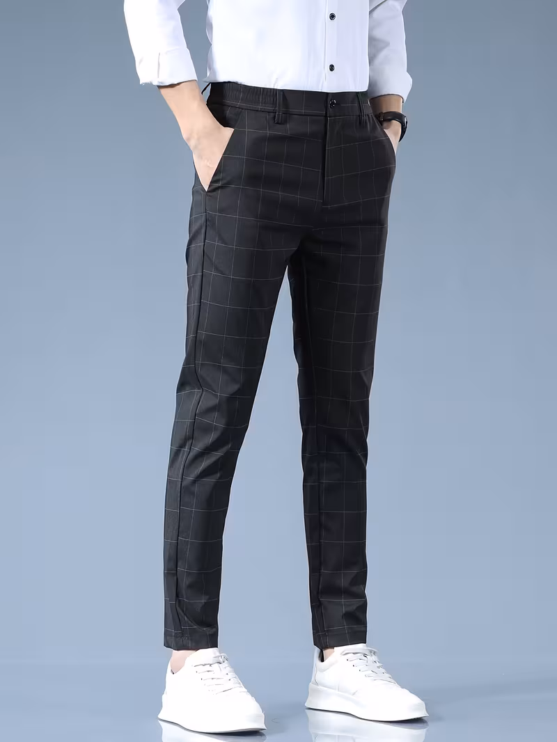 Light Business Plaid Slim-Fit Men's Straight-Leg Spring New 2025 Four-Season Fashion Trendy Brand Versatile Men's Formal Casual Cropped Pants Tongtongbang