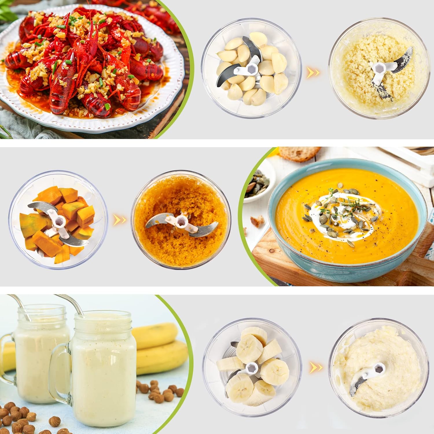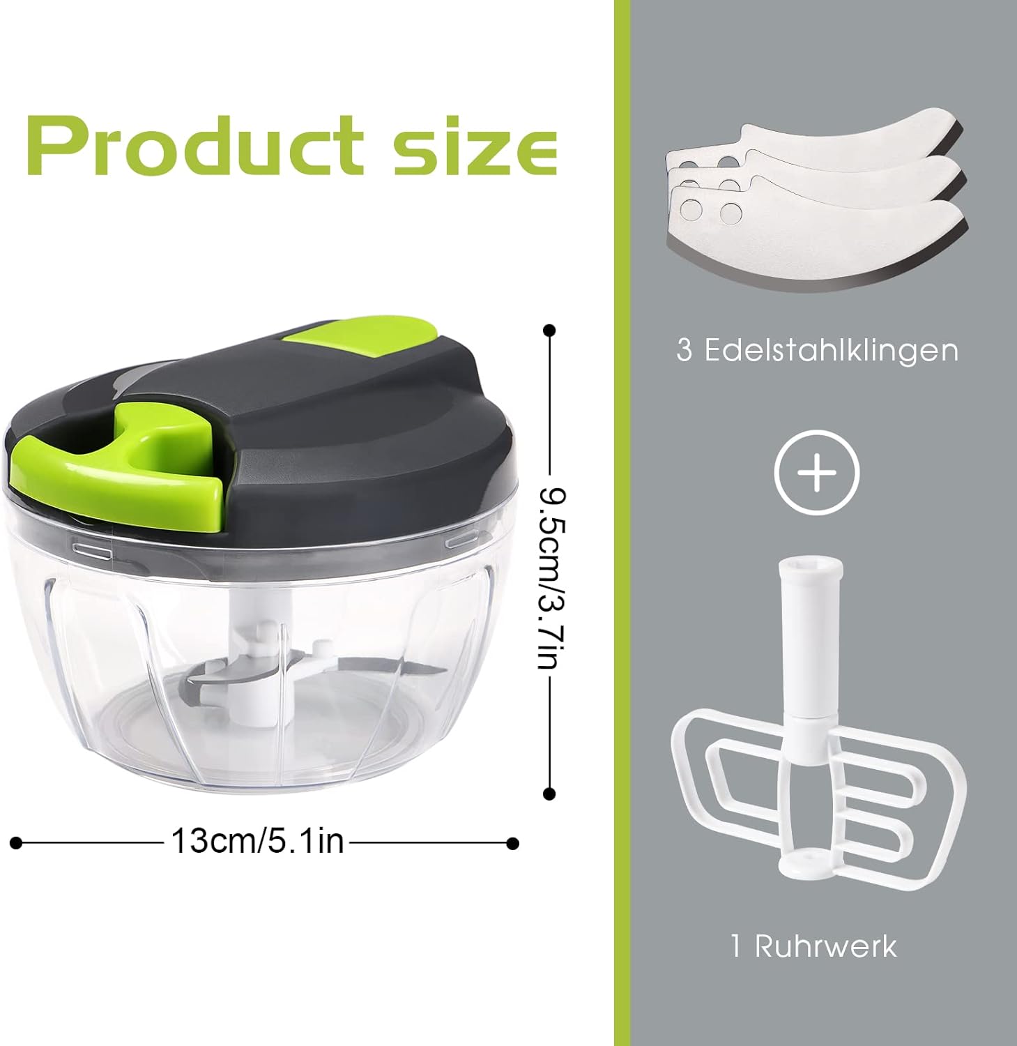 【Safe Material】Made of food-grade PP plastic, BPA free, this manual mini chopper comes with sharp 420 stainless steel blade.Won’t blunt, bent and rust. 【Very Effective】The mini food processors works without electricity. Chop almost all types of food quickly and effortlessly- the more often you pull the string, the finer the result! The manual garlic chopper is perfect for home kitchen, travel and camping. You can also used as a gift to your loved ones. 【Multi-Function Food Chopper】With the food chopper dicer you can process any vegetables and food.The onion chopper dicer is perfect for chopping onion, vegetables, fruits, carrot, nuts, ginger, meat etc. 【Durable Manual Garlic Chopper】The stable, non-slip base of the premium hand chopper prevents the chopper from slipping off the counter and the transparent bowl makes it easy to see the degree of chopping. Additional blender can mixe/blend the ingredients effectively. 【Easy to Clean & Storage】Detachable blade, cover and bottom body make to easy clean and storage. Simply rinse under running water, NOT suitable for dishwasher! This vegetable chopper is perfect kitchen gadget. We believe in our vegetable cutter so much that if for any reason you are not fully satisfied, simply call or email us and we will send you a replacement or full refund, no questions asked.
