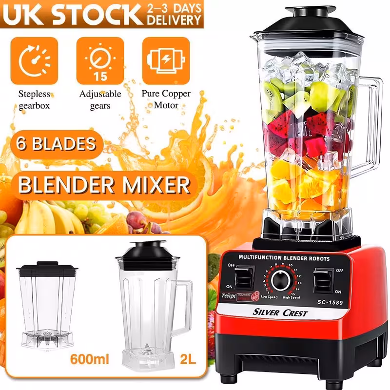 Multifunctional Blender Set, 2L+600ML Large Capacity Wall Breaker - High Power, 15 Adjustable Speeds, 4500W, Automatic Juicer,blenders for kitchen, blender for shakes and smoothies, slushy machine, food processor, blenders for kitchen heavy duty. Christmas GiftsPower Supply: Plug Powered