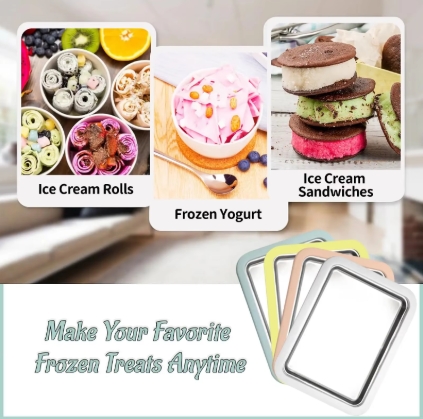 [Easy to Use] This ice cream maker pan is easy to use. Just pour the mixed ingredients into a quick-freeze pan, then scoop and fry until the ice cream in its shape. The double-layer hollow design is easy and quick to cool food.