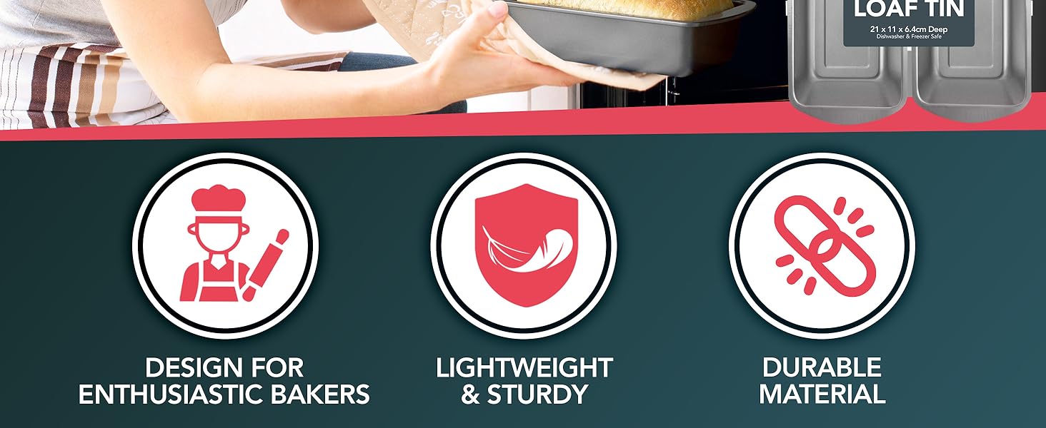 Easy Non-Stick Baking – Designed as baking tins for oven non stick, it ensures effortless release and easy cleaning. Pair with bread pan for consistent results every time.