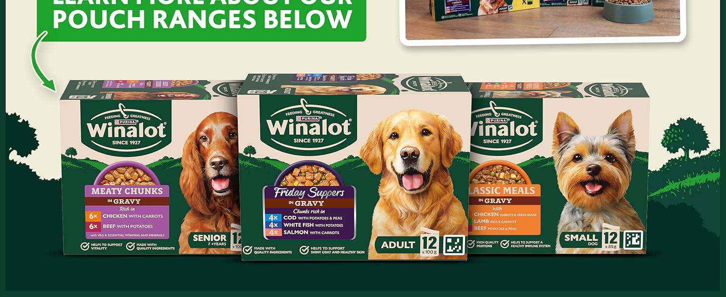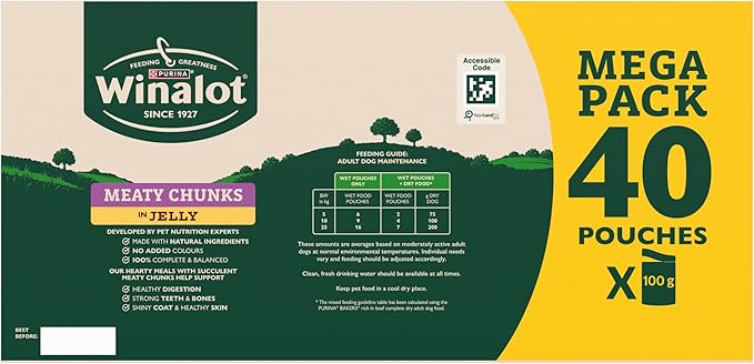 WINALOT Meaty Chunks Adult Wet Dog Food Mixed in Jelly Beef, Chicken, Lamb 40x100g Pouches